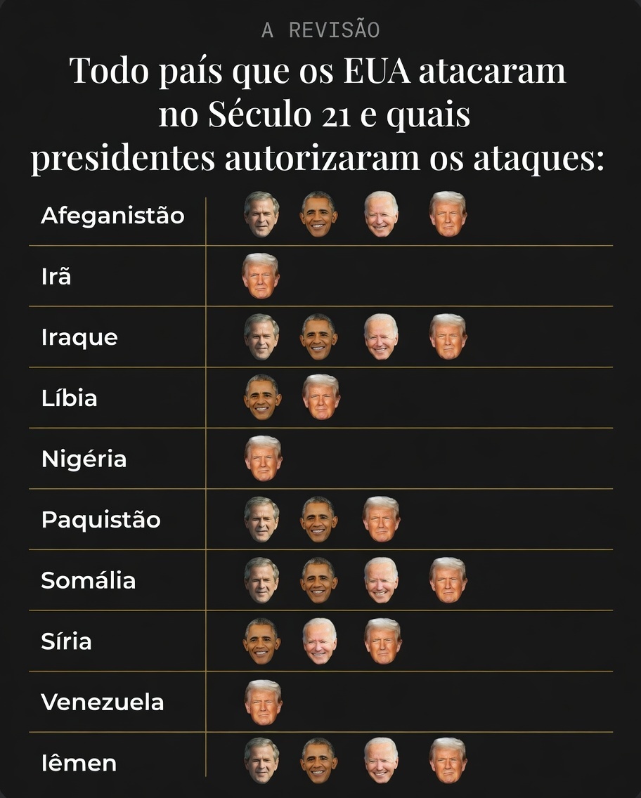 E parece estar piorando com o tempo. Na verdade, aqui está o placar das últimas 10 intervenções militares dos EUA e o número delas adotadas por cada um dos quatro presidentes americanos durante o século XXI até hoje.