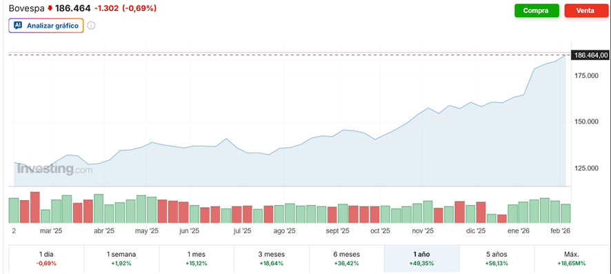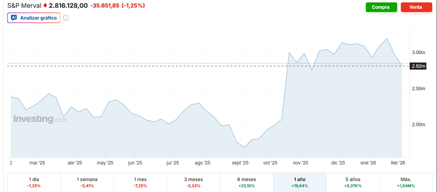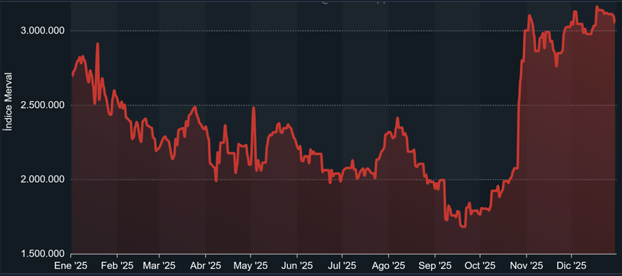 Mas, deixando de lado a propaganda e a retórica, a realidade é que os investimentos na Argentina não são relevantes. Para comparação com o gráfico da BlackRock, aqui está um que mostra o desempenho do índice argentino S&P Merval durante 2025: