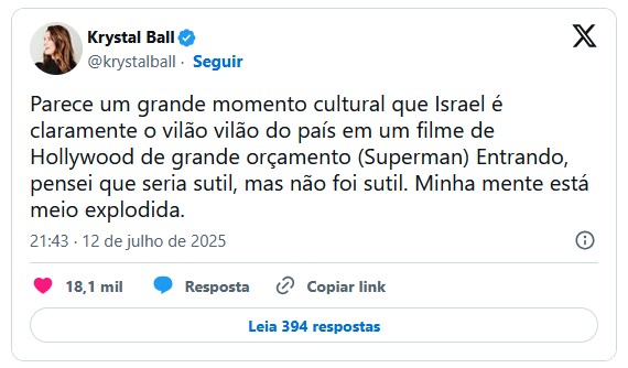 Muitos dizem que o novo filme do Superman é um comentário sobre a guerra em curso de Israel em Gaza, na qual Israel é o vilão e o herói do filme luta pelos palestinos.
