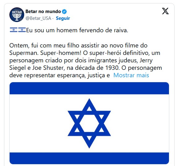 Os criadores do Superman, Jerry Siegel e Joe Shuster, eram judeus. O ator David Corenswet, que interpreta o Superman, também é judeu. Ainda assim, tanto Krystal Ball quanto Betar Worldwide não estão sozinhos em entender o Superman e suas mensagens de política externa da mesma maneira.